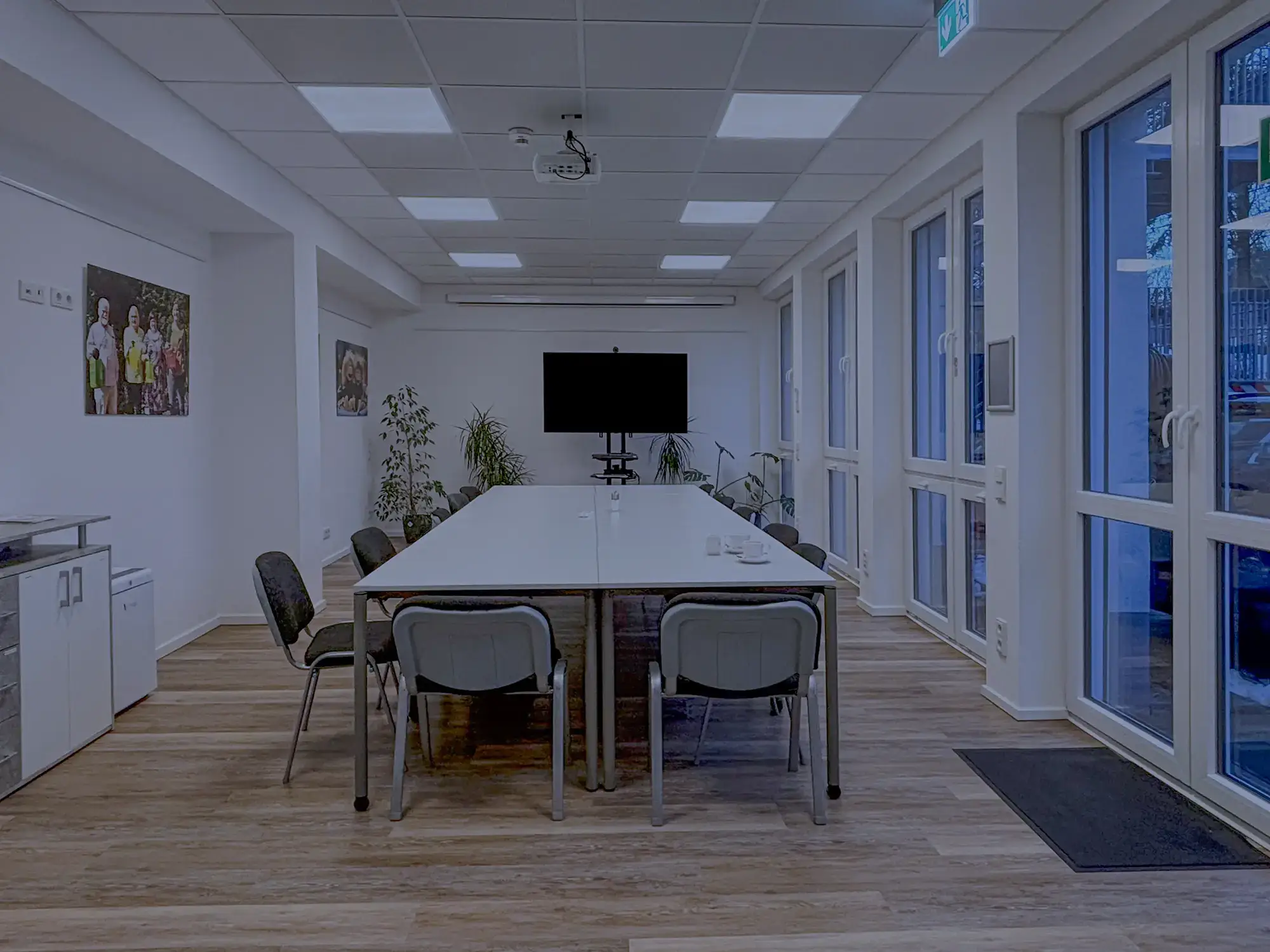 Ausstattung: Flipchart, Metaplanwand, Moderationskoffer. Küchenzeile mit Spüle, Spülmaschine, Kühlschrank, SodaStream und Geschirr/Besteck für bis zu 30 Personen.
